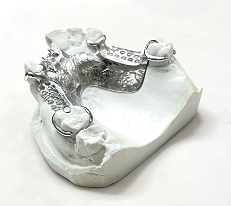Cast chrome partials offer a durable and trustworthy solution that both dentists and patients appreciate. With a sleek, lightweight design, the metal framework fits comfortably in the mouth, making it easier for patients to adapt. With our cast chrome partials, you can combine flexible, tissue-colored, or clear clasps to achieve a more esthetic outcome. The precise casting ensures a secure fit that stays in place, reduces food traps, and protects surrounding teeth. Patients can count on reliable performance and lasting comfort every day.